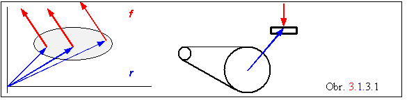 ako vektorový súčin polohového vektora pôsobiska sily a pôsobiacej sily :