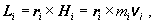 zvolený vzťažný bod, Hi je hybnosť i -tej častice pohybujúcej sa rýchlosťou vi. Veľkosť a smer vektora momentu hybnosti pohybujúcej sa