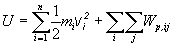 systém), na ktorú pôsobia vonkajšie i vnútorné sily. Definujme vnútornú energiu U systému súčtom celkovej kinetickej energie sústavy n-hmotných bodov a celkovej vnútornej potenciálnej energie sústavy n-hmotných bodov vzťahom