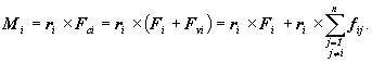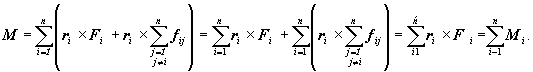 dostaneme pre celkový moment výslednej sily pôsobiacej na sústavu častíc