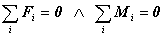 Podmienky rovnováhy tuhého telesa sú: súčet všetkých vonkajších síl a súčet všetkých momentov týchto síl vzhľadom na jeden ľubovoľne zvolený momentový bod je nulový vektor, sú vyjadrené vzťahmi: