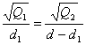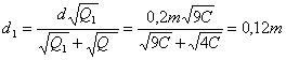 Po použití vzťahu d2 = d – d1 a odmocnení rovnice dostaneme
