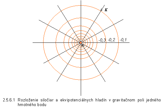 gravitačného poľa vytvoreného jedným hmotným bodom s hmotnosťou M,