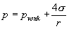 vykonali povrchové sily pri zmenšení povrchu kvapky o dS vedie k zmenšeniu povrchovej energie o dE = s dS. Táto sa musí rovnať práci na zmenšenie objemu o dV pri kapilárnom tlaku pk: dW