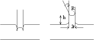 r je polomer kapiláry, υ je krajný uhol (obr. 3.28) - teda uhol, ktorý zviera voda