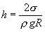 kde R je polomer krivosti vzniknutého menisku v kapiláre. Prevaha vonkajšieho tlaku potom vytláča kvapalinu v kapiláre nahor a to dovtedy, kým sa zníženie tlaku nebude rovnať hydrostatickému tlaku zdvihnutej kvapaliny. Pre výšku stĺpca kvapaliny - tzv. elevačnú výšku, potom platí: