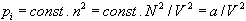 Príťažlivé sily na časticu, ktorá je ďalej od stien sa pri chaotickom pohybe rušia, pretože táto častica je zo všetkých strán obklopená časticami, ktoré ju k sebe priťahujú. Situácia inakšie vyzerá v tesnej blízkosti steny. Na vrstvu častíc (označme ju A), ktorá je v priamom susedstve so stenou, pôsobia príťažlivé sily od vrstvy častíc plynu, ktorá s ňou priamo susedí (vrstva B). Na vrstvu A pôsobia teda príťažlivé sily len z jednej stranu (od steny nádoby nie), vrstva A je vťahovaná dovnútra. Počet častíc vo vrstve A je úmerný koncentrácii n. Počet častíc vo vrstve B je tiež úmerný n. Sila medzi vrstvami je úmerná počtu častíc v oboch vrstvách, t.j. n2. Vnútorný tlak úmerný tejto sile bude tiež úmerný n2. Koncentrácia sa zase rovná počtu častíc v nádobe (ktorý je konštantný) delenom objemom nádoby, t.j. n = N /V a vnútorný tlak môžeme napísať ako